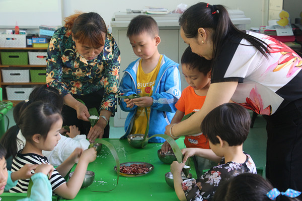放学后,老师们还给每个孩子准备了两个粽子带回家和爸爸妈妈一起分享。“寓教于乐,快乐成长”,笔者衷心为这次活动能给小朋友们带来快乐而感到高兴。本次包粽子活动丰富了该园的主题活动,也增加了孩子们的生活经验,让幼儿更好地了解端午节,感受传统佳节悠久的文化气息,进一步激发了幼儿的爱国主义情感,同时让家长也参与到我们的幼儿园教学活动中,传承中国传统节日的文化气息,共度佳节。