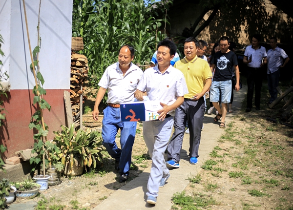 6月29日,略阳县金家河镇的部分党员干部和包扶牵头单位宣传部的同志带着生日蛋糕和礼物,走进走马村96岁老人徐秀英家,看望慰问这位与共产党同龄的老人。